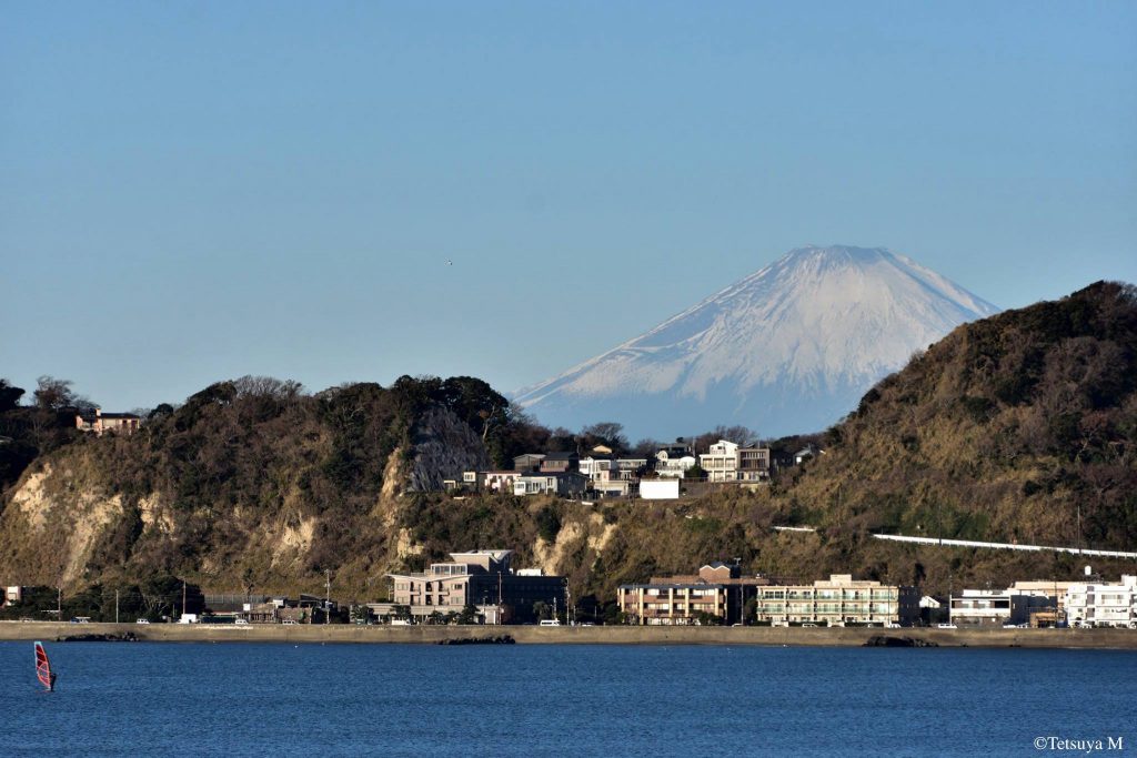 材木座から坂の下方面へ霊峰富士を狙う。鎌倉のビーチ東側では、どこでも富士山がこのように見る事ができます。