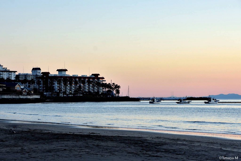 材木座から逗子マリーナをとらえた写真。夕暮れ時です。ドラマチックな様相へと変化する前です。