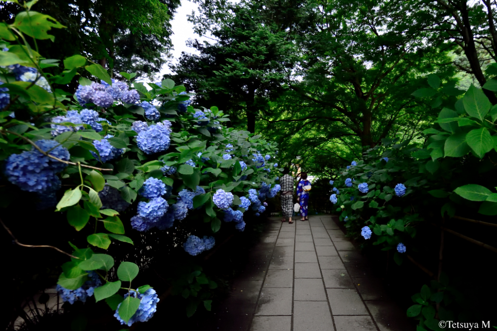 紫陽花 明月院、ここの紫陽花は大きな木々 のこぼれ日に照らされて咲く紫陽花 が印象的でした。