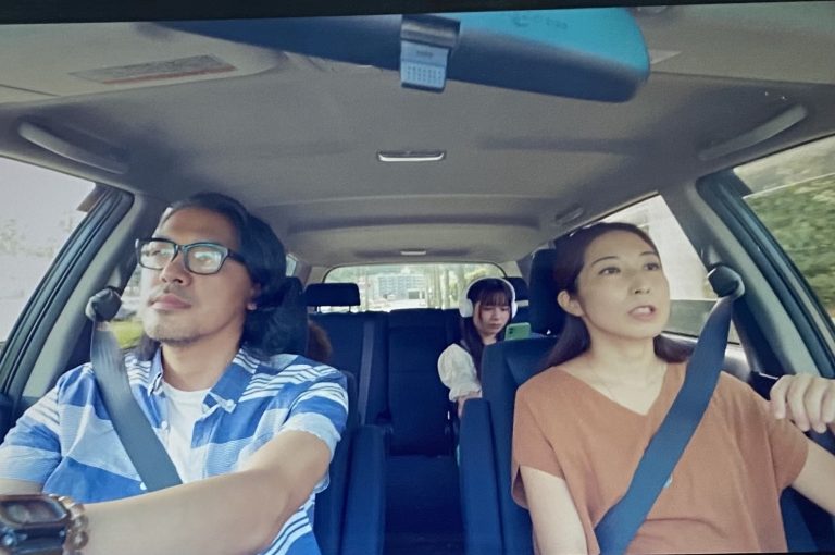 案の定、運転席で楽しそうな両親を後尾座席でつまらなそう。