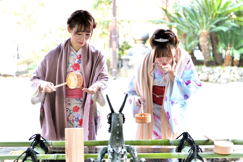 着物に着替えて、いざ出発。最初に訪れたのは長興山妙本寺。