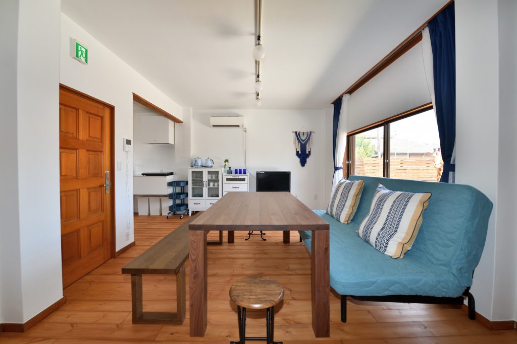 「Grand Bleuは、もともと外壁に青いタイルが入っていたので、青と白でナチュラルなサーファーズハウスをイメージして作りました。Blue Lagoonは平屋の建物で少しお庭の方があったので、お庭と部屋がつながった感じになるように大きめのデッキを作りながらナチュラルなイメージで仕上げました。Pine Treeは、アパートの一室で、ここはオレンジをキーワードにちょっと南国っぽいイメージに。Leafは、Pine Treeの下の階でここはイメージカラーがグリーン。形はほぼ一緒ですが、カラーで部屋のイメージを変えました。そして琥珀(-AMBER-)は築100年という古民家だったので、不具合を直しながら古民家の良いところを最大限に引き出すように作りました」