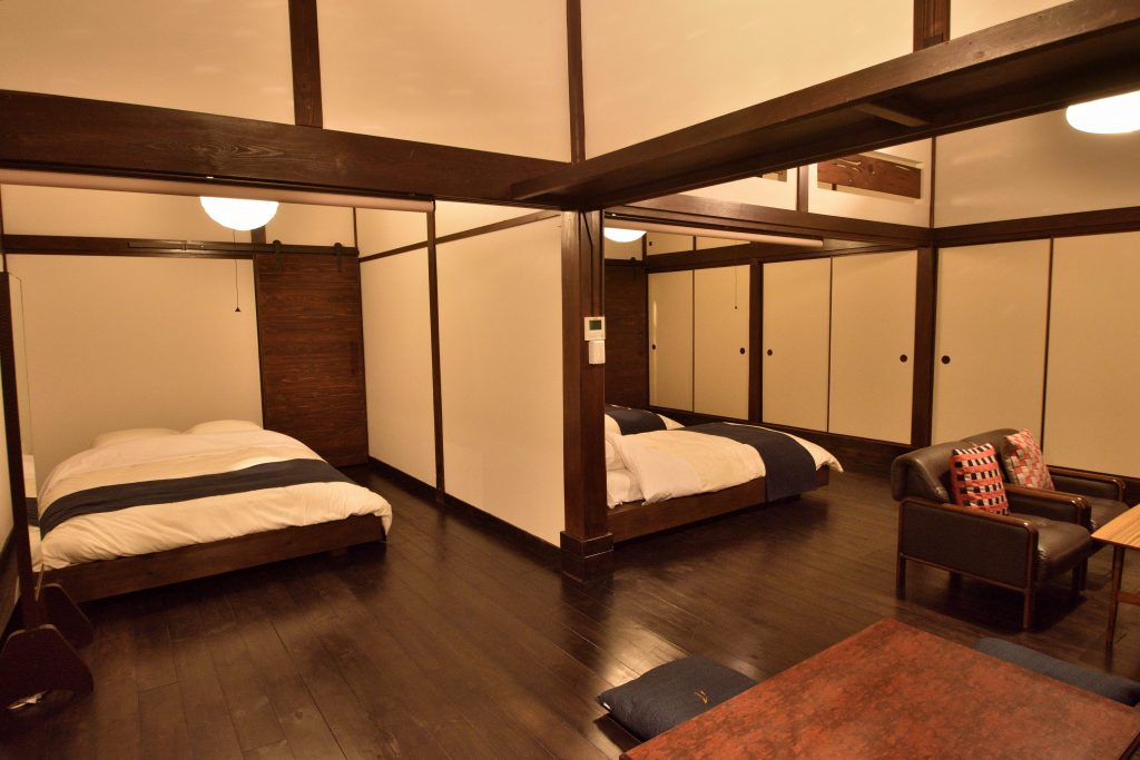 そんな苦労も築100年の古民家ならでは。職人さんたちの協力を得ながら、宿泊施設に対応すべく水道の数を増やしたり、床の高さを調整したりした上で、最後はペンキで古さを演出した。
