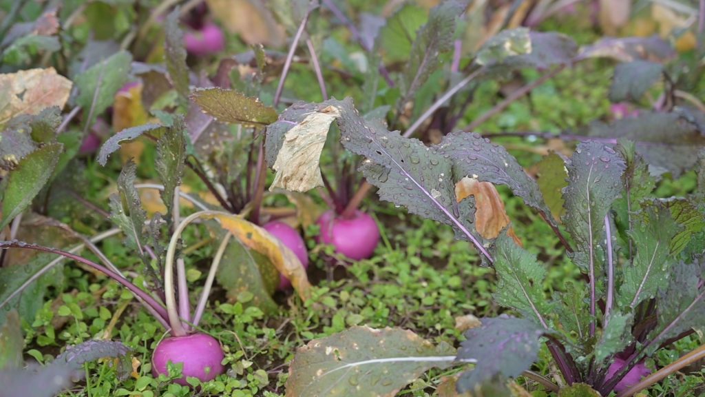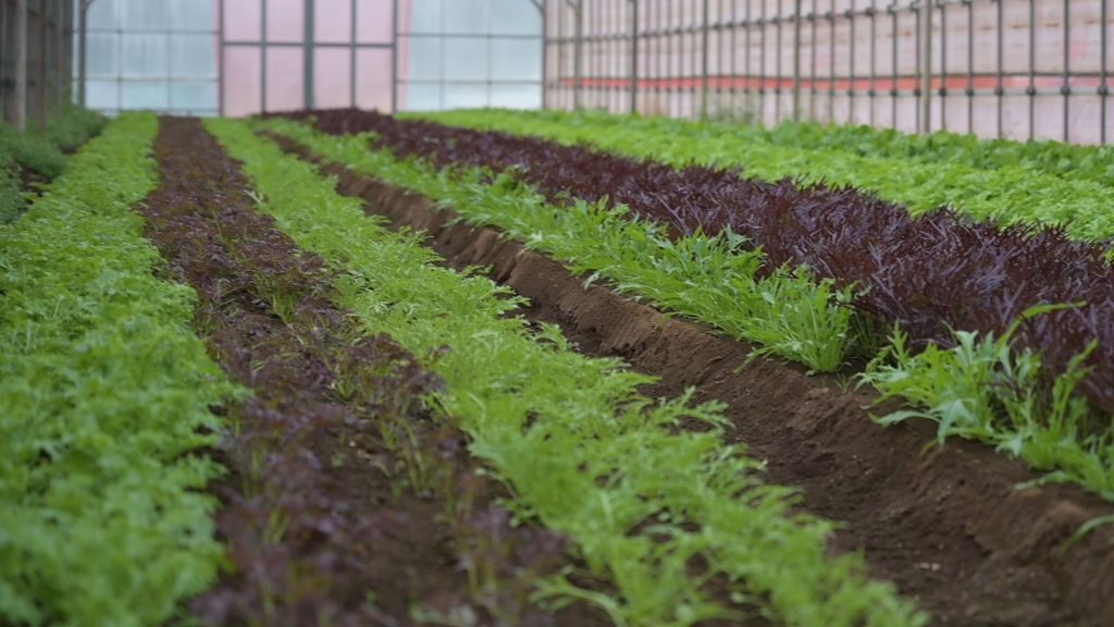 畑には、あやめかぶ、ハンサムレタス、ビーツ、オータムポエム、菜花、ラディッシュ、黒大根、紅芯大根、ハウスにもルッコラ、からし菜、グリーンリーフと、植えられている野菜は本当にさまざま。海外から珍しい野菜の種を取り寄せて育てることもある。ロマネスコもその1つ。初めはインターネットで種を取り寄せ、日本と違い収穫時期も明確に定まっていないヨーロッパの野菜を試行錯誤しながら作ったそうだ。