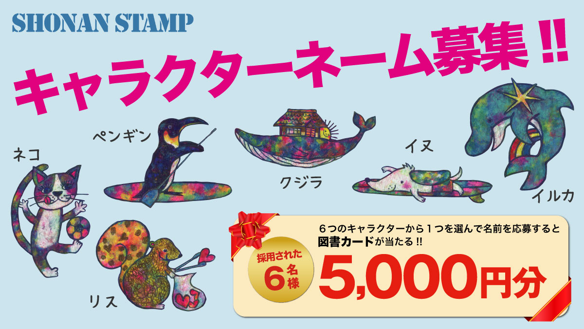 お気に入りのキャラクターの名前を考えて応募するとSHONAN STAMPで1スタンプGET🎶