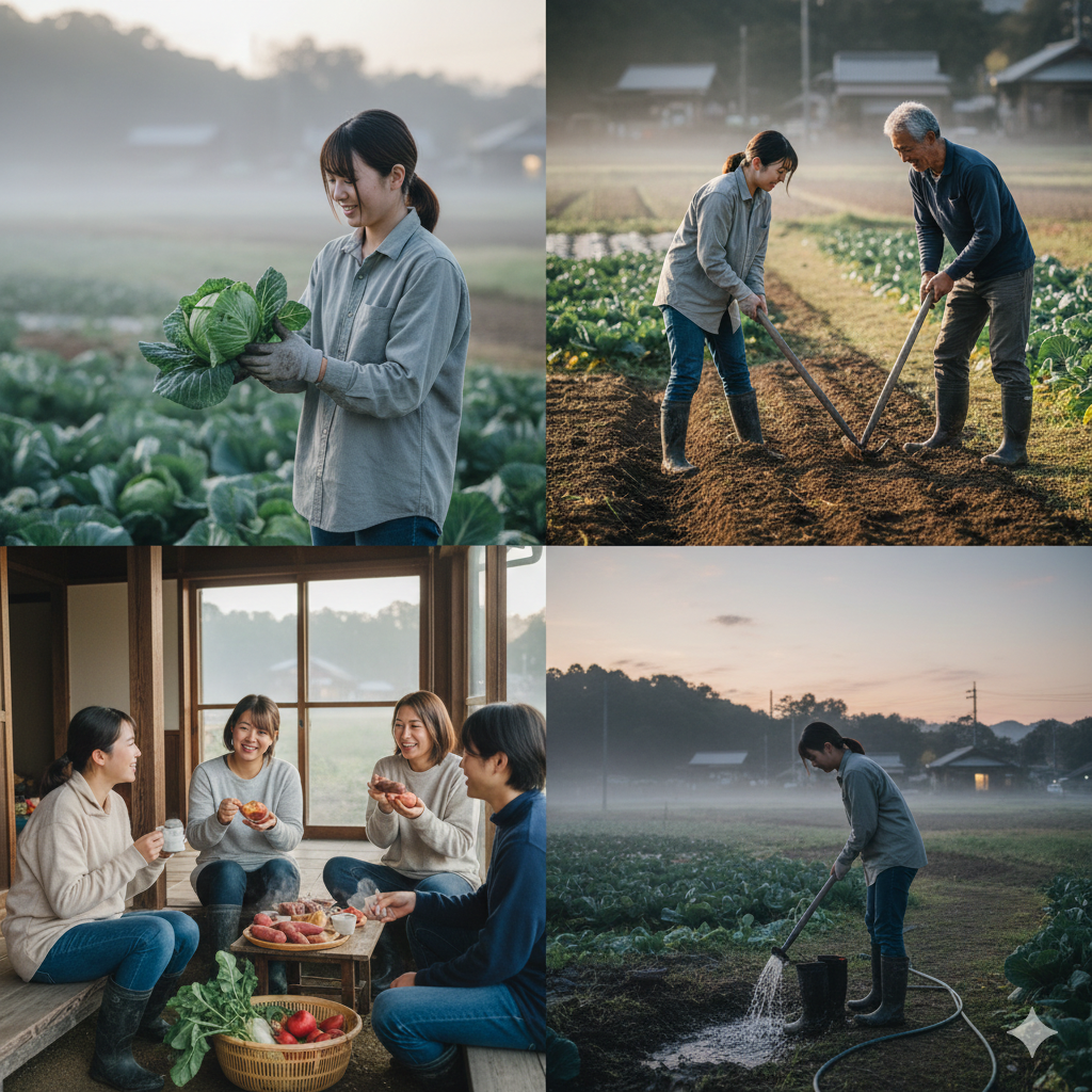 私の毎日は、驚くほどアナログで、泥臭くて、そして驚くほどエネルギッシュ。 今日は、ガイドブックには絶対に載らない、農泊研修生の**「ある1日のルーティン」**を、私の心のつぶやきと共に、たっぷりとお届けします。