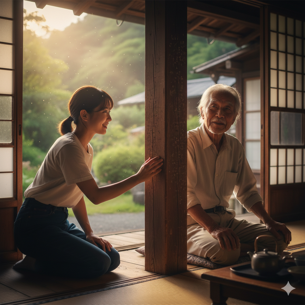古民家の 柱の 傷は、ただの 傷では ありませんでした。 それは、何十年もの 家族の 時間と、たくさんの 思い出が 詰まった、宝物でした。この 傷があるから、この お家が、もっと 温かく、生きているように 見えます。
