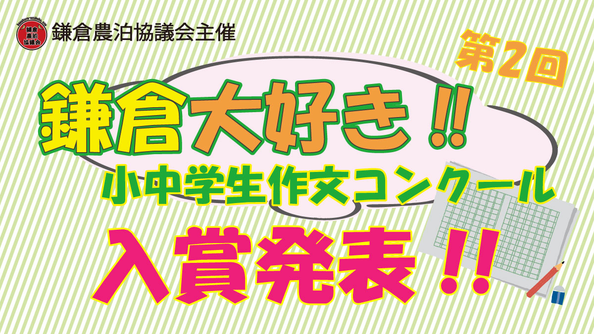 鎌倉農泊協議会が主催する作文コンクールは、全国の小中学生を対象に『鎌倉大好き!』をテーマにして鎌倉の景色、お店、体験、旅の思い出など「鎌倉」へのお手紙を書こう!!という内容で作品を募集しました。